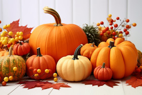 autumn fall festive decor pumpkins berries leaves white wooden background thanksgiving halloween harvest harvest season thanksgiving table thanksgiving centerpiece halloween centerpiece pumpkin patchImagine Buddy