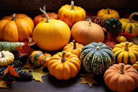 autumn composition dry ripe leaves pumpkins table dark wooden fall harvest nature still life food decoration season thanksgiving october november december octoberfest halloween foliage pumpkin spice gourd squash harvest moon harvest table harvest festival rustic seasonal thanksgiving table cornucopia turkeyImagine Buddy