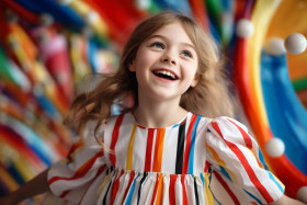 girl striped dress amusement park festive fun happy joy laughter smiling carefree childhood innocence innocence wonder excitement adventure family friends memories roller coaster carousel ferris wheel cotton candy popcorn ice cream games prizes music laughter celebration happiness joy excitement adventure fun family friends memories childhood innocence wonder summer vacation happiness joy fun excitement adventureImagine Buddy