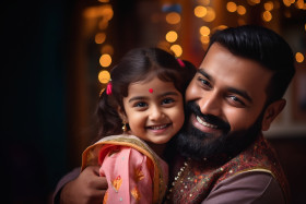 indian father daughter happy single cute little girl hugging warmth love traditional clothes portrait hug family relationship bond affection care support happiness joy togetherness bonding connection diversity culture tradition portraiture photography portraiture photography indian family parenting parenthood photography family photography lifestyle teenagers indoorsImagine Buddy