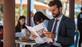 A photo of a hr manager reading too long candidates resume, free ai prompts for hr