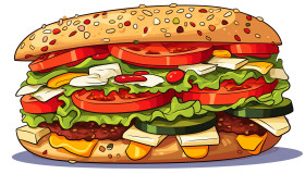 A photo of a drawing of a sandwich with different toppings clip art, free ai prompts for food clip art