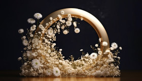 A gold mirror arch decorated with white flowers, free ai prompts and images floral photo backdrops