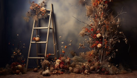 A ladder leaning against a ladder and some dried flowers, free ai prompts and images floral photo backdrops
