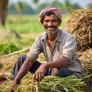 indian man farmer harvest worker field crops smiling happy friendly hardworking dedicated rural agriculture farming food india portrait male adult people job occupation rural life labor employment livelihood work toil effortImagine Buddy