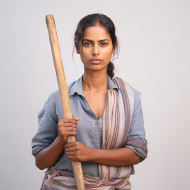 Confident indian woman farm laborer at work on white background