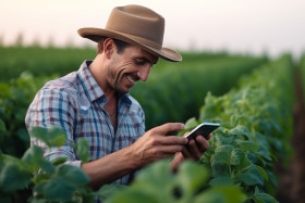 happy young farmer checking crop growth mobile phone agriculture technology rural life smile field harvest nature environment innovation future hope success determination hardwork dedication passion dream achievement technology innovation future hope success determination hardwork dedication passion dream achievement progress development prosperity sustainability empowermentImagine Buddy