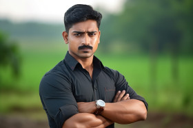 farmer indian young confident agriculture farmland rural india man field work crops cross-armed looking camera portrait business success entrepreneurship pride hard work determination passion dedication sustainable organic traditional modern rural life community village countryside nature landscape food livelihood economy development growth investment opportunityImagine Buddy