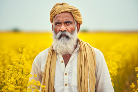 beautiful dramatic portrait indian rural angry farmer standing mustard field kurta pajama india agriculture farming countryside village man people culture tradition work labor sweat toil determination anger protest injustice inequality poverty exploitation oppression social issues human rights activism change hope futureImagine Buddy
