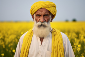 beautiful dramatic portrait indian rural angry farmer standing mustard field kurta pajama india agriculture farming countryside village man people culture tradition work labor sweat toil determination anger protest injustice inequality poverty exploitation oppression social issues human rights activism change hope futureImagine Buddy