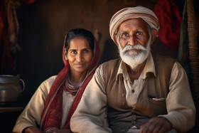 Old indian farmer couple photo at home
